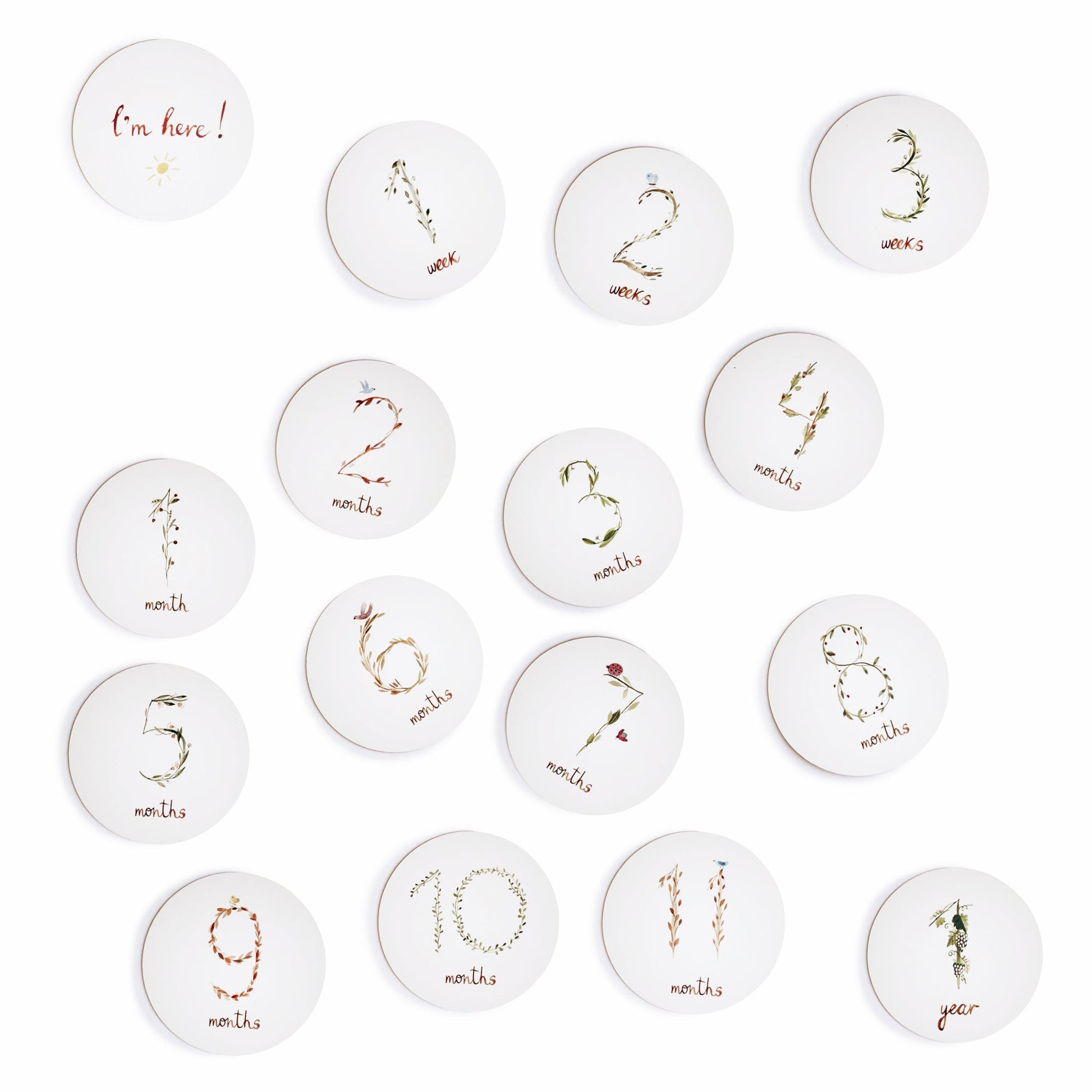 Document the growth of your new baby with this set of 16 beautifully-illustrated milestone cards, lovingly designed in Sweden. Each double-sided card displays whimsical watercolor designs and dedicated space for you to capture memories, thoughts, and notes to your baby as they grow.